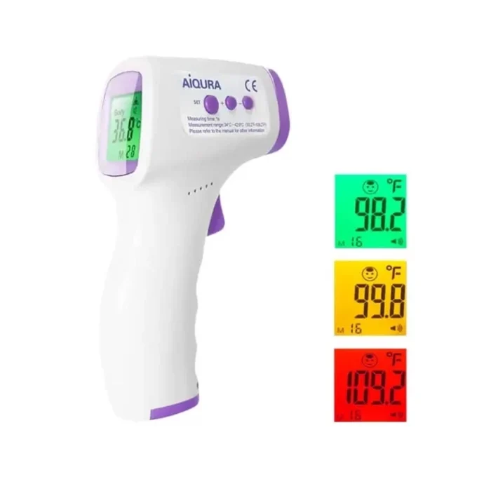 تب سنج دیجیتال aique, تب سنج که یکی از اقلام مهم و ضروری لوازم ایمنی و مراقبتی به ویژه در این روزها جهت تشخیص بیماری مورد استفاده قرار گرفته می شود. درجه حرارت بدن یکی از مهمترین علائم حیاتی است و از این رو تغییرات آن به خصوص افزایش درجه حرارت بدن (تب) به عنوان یکی از اولین پاسخهای دفاعی بدن به شمار می آید. این محصول یک دماسنج غیر تماسی است که با استفاده از امواج مادون قرمز، دمای بدن انسان را اندازه گیری می کند. به این صورت که استفاده فقط لازم است که دستگاه را روبروی پیشانی قرار دهید تا دمای بدن به سرعت و با دقت اندازه گیری شود. تب سنج غیر تماسی یا دیجیتالی که به نام تب سنج تفنگی نیز معروف است. منبع تغذیه این محصول دو باطری نیم قلمی 1.5 ولتی بوده و وزن محصول بدن باطری 104 گرم می باشد.