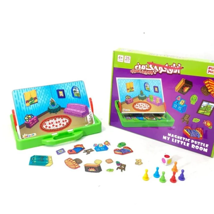 بازی جورچین آهنربایی اتاق کوچک یک بازی خلاقانه و آموزشی برای کودکان است که به آن‌ها کمک می‌کند با مفاهیم چیدمان، رنگ و فضا آشنا شوند. در این بازی کودک می‌تواند با استفاده از قطعات مغناطیسی وسایل مختلف اتاق را روی صفحه آهنربایی بچیند و ترکیب‌های متنوعی بسازد. این فعالیت حس خلاقیت، تمرکز و هماهنگی چشم و دست را در کودک تقویت می‌کند.