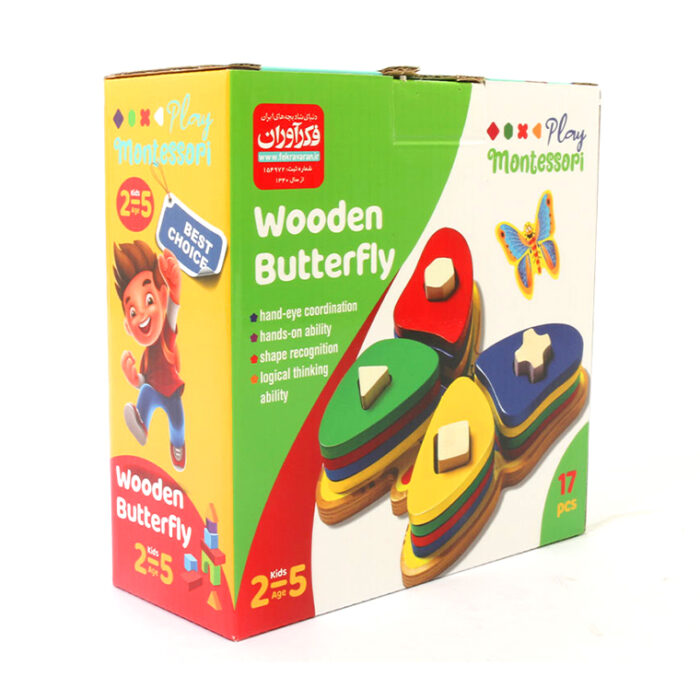 بازی مونتهسوری شکل پروانه یک اسباببازی آموزشی و جذاب برای کودکان خردسال است که با هدف تقویت مهارتهای حرکتی ظریف، هماهنگی چشم و دست و یادگیری رنگها و اشکال طراحی شده است.
