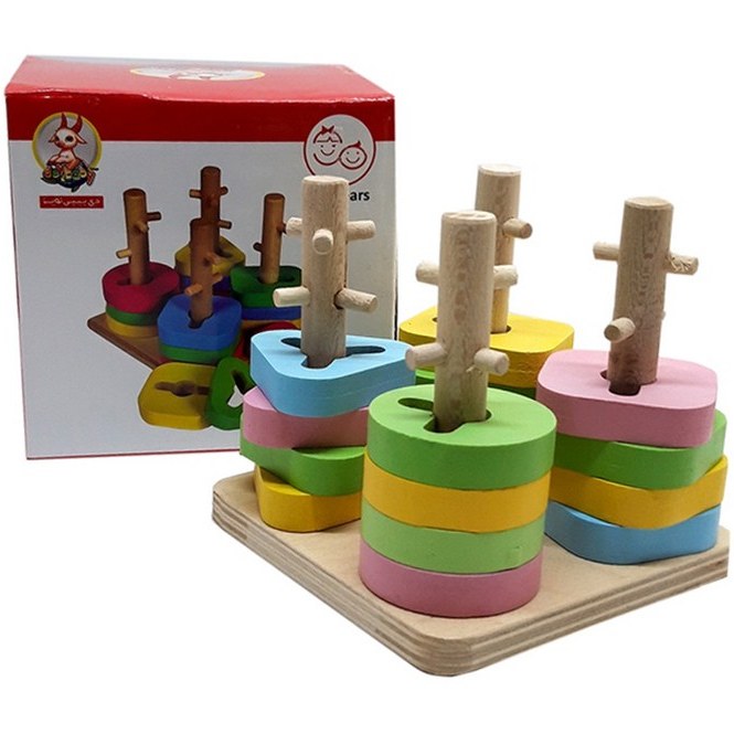 در این اسباببازی، چهار ستون چوبی روی پایهای محکم قرار دارند و روی هر ستون موانعی طراحی شده تا عبور دادن قطعات به چالشی لذتبخش تبدیل شود. کودک باید قطعات رنگی و هندسی را با دقت از میان این موانع عبور دهد و روی ستونها قرار دهد. این فرآیند، دقت، صبر، هماهنگی چشم و دست، و مهارت حرکتی ظریف او را تقویت میکند.